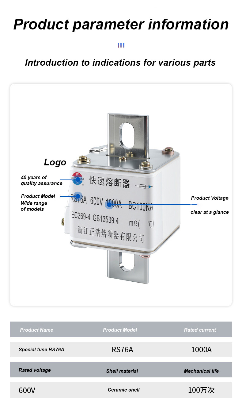 RS76A 600V 100A BC100KA Fuse Links errendimendu handiko babes elektrikoko osagaiak dira, industria eta merkataritzako energia banatzeko sistemetarako diseinatuta. 600V-ko tentsioa eta 100A-ko korronte-ahalmena dutenez, fusible-lotura hauek gainkarga eta zirkuitu laburren aurkako zirkuitu babes fidagarria bermatzen dute. RS76A 600V 100A BC100KA Fusible Linkek 100kA-ko haustura-ahalmena dute, eta akats-korronte handiak gerta daitezkeen aplikazio zorrotzetarako egokiak dira. Fusible-lotura hauek iraunkortasunerako, segurtasunerako eta instalazio errazerako eraikita daude, zure ekipo elektrikoari babes ezin hobea eskainiz. Aukeratu RS76A 600V 100A BC100KA Fusible Links elikatze sistema egonkor eta eraginkorra izateko.
